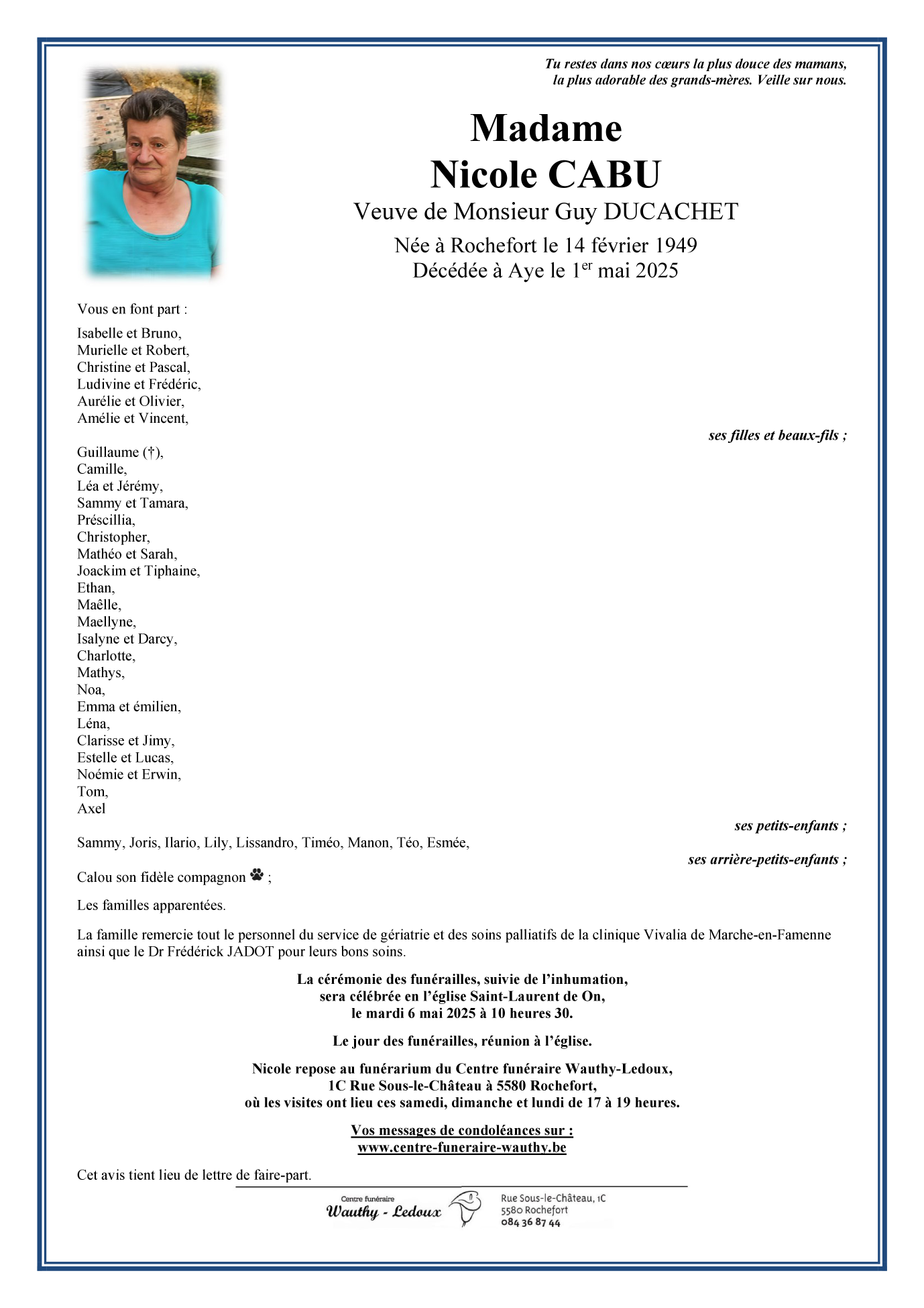 Overleden te Aye (6900, België) op donderdag 1 mei 2025 op 76-jarige leeftijd
