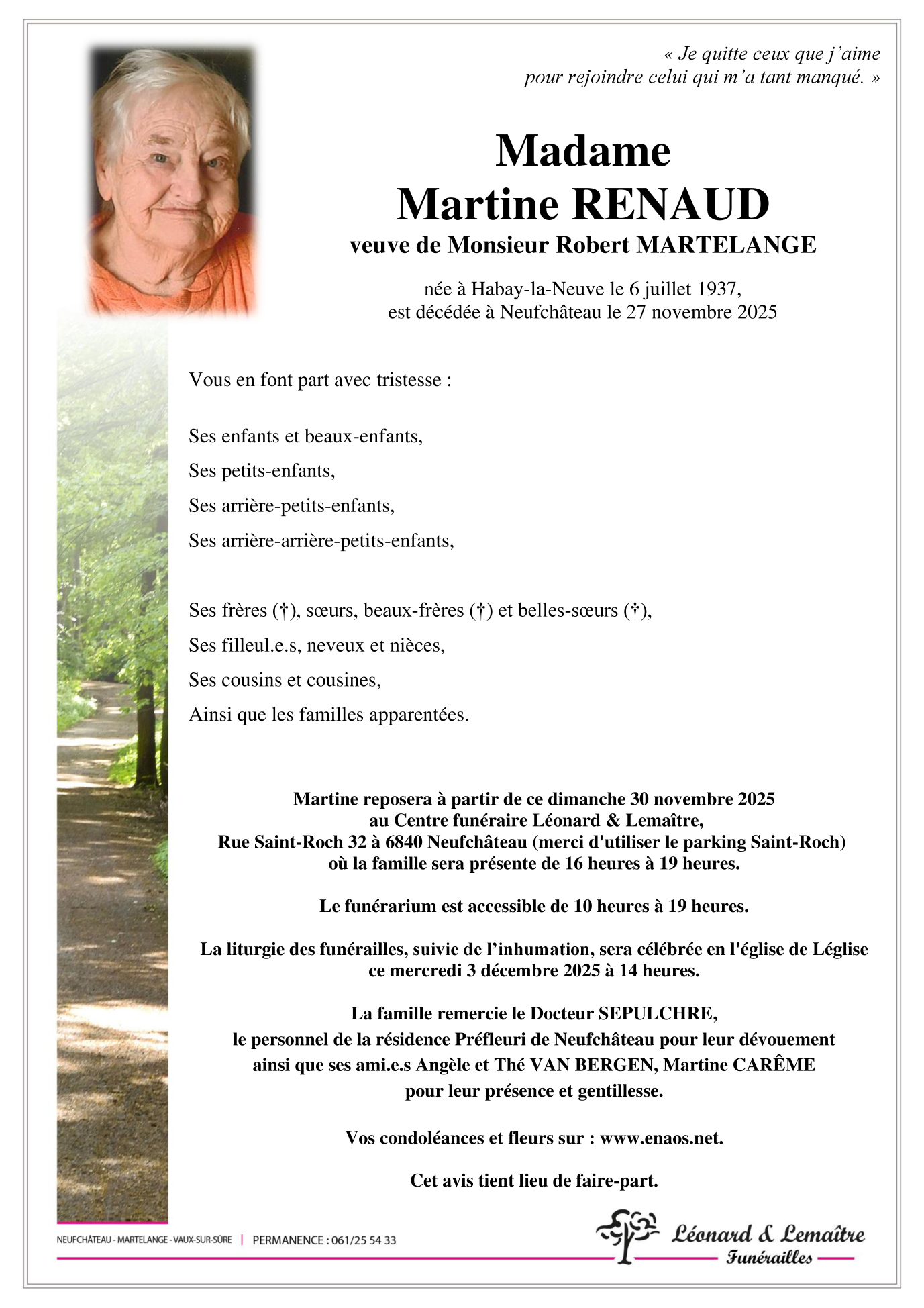 Veuve de Monsieur Robert MARTELANGE