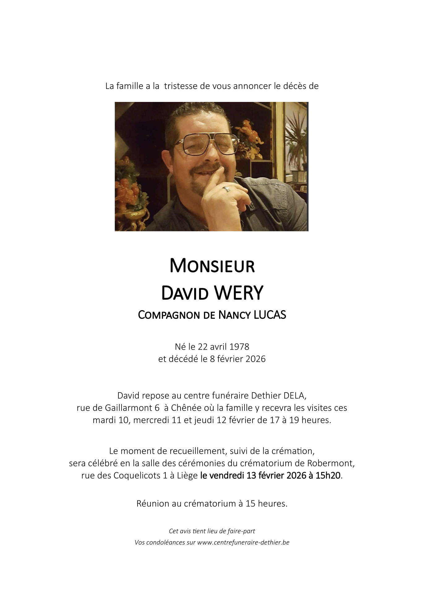 Fallecido en Liège (4000, Bélgica) el domingo, 8 de febrero de 2026 a la edad de 47 años
