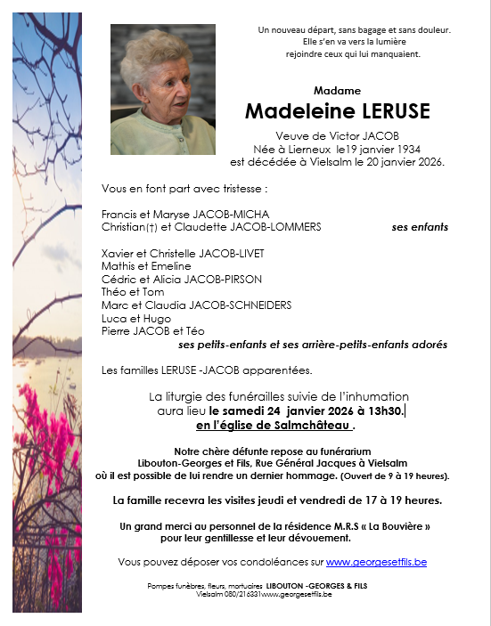 Fallecida en Vielsalm (6690, Bélgica) el martes, 20 de enero de 2026 a la edad de 92 años