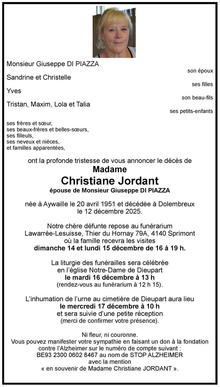 Fallecida en Sprimont (4140, Bélgica) el viernes, 12 de diciembre de 2025 a la edad de 74 años