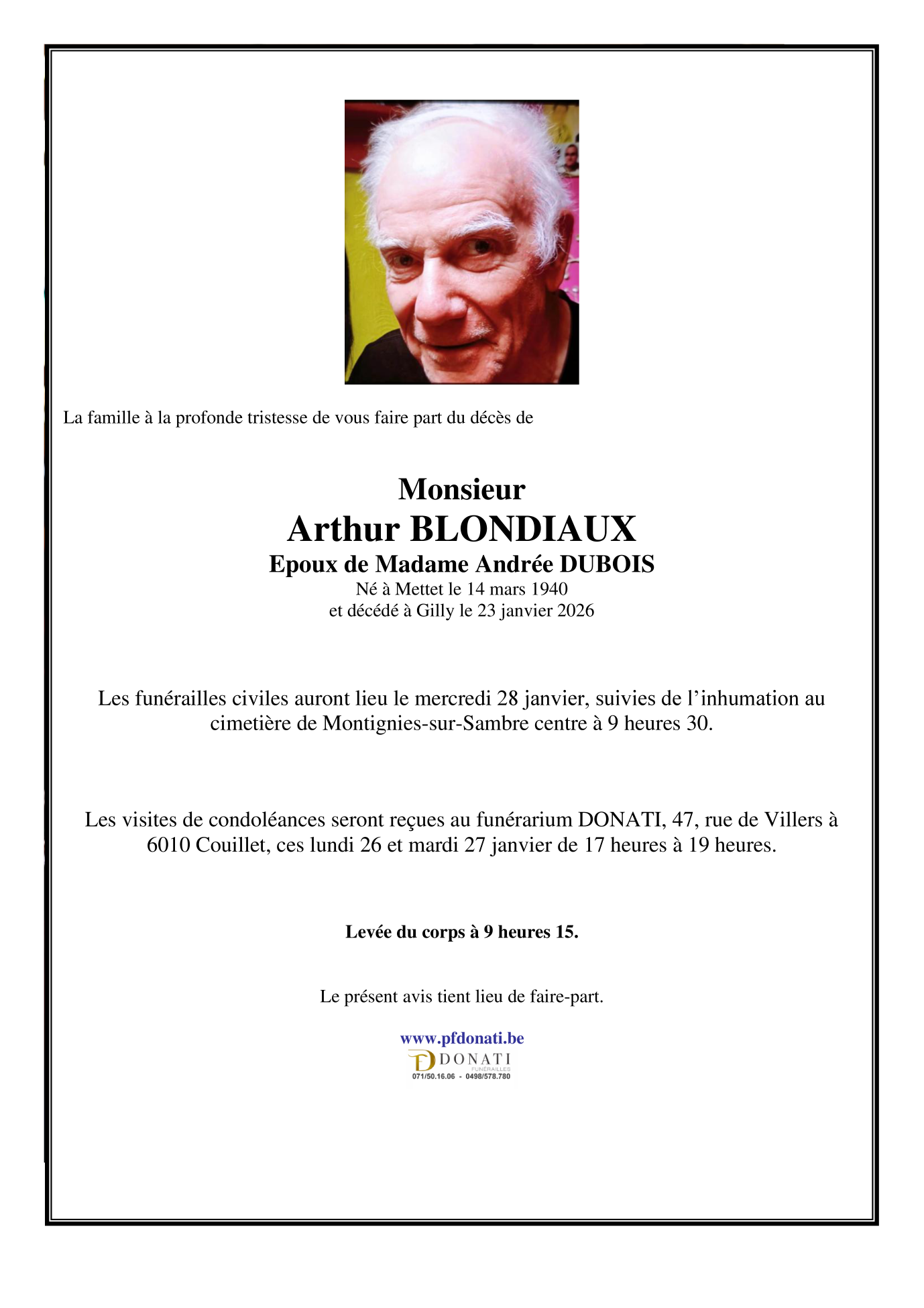 Overleden te Gilly (6060, België) op vrijdag 23 januari 2026 op 85-jarige leeftijd