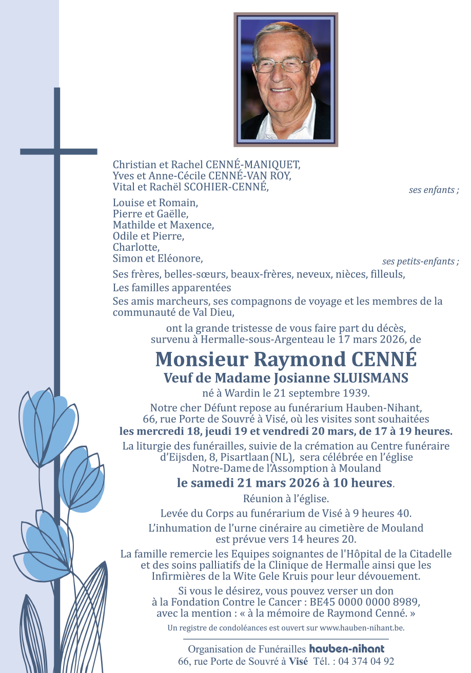 Overleden te Hermalle-sous-Argenteau (4681, België) op dinsdag 17 maart 2026 op 86-jarige leeftijd