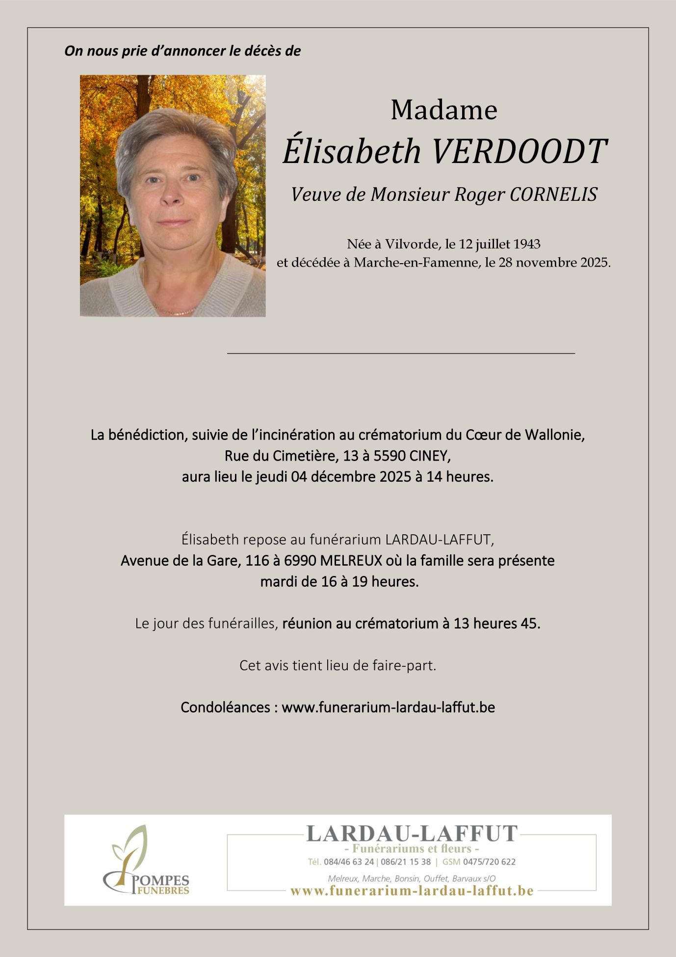 Overleden te Marche-en-Famenne (6900, België) op vrijdag 28 november 2025 op 82-jarige leeftijd