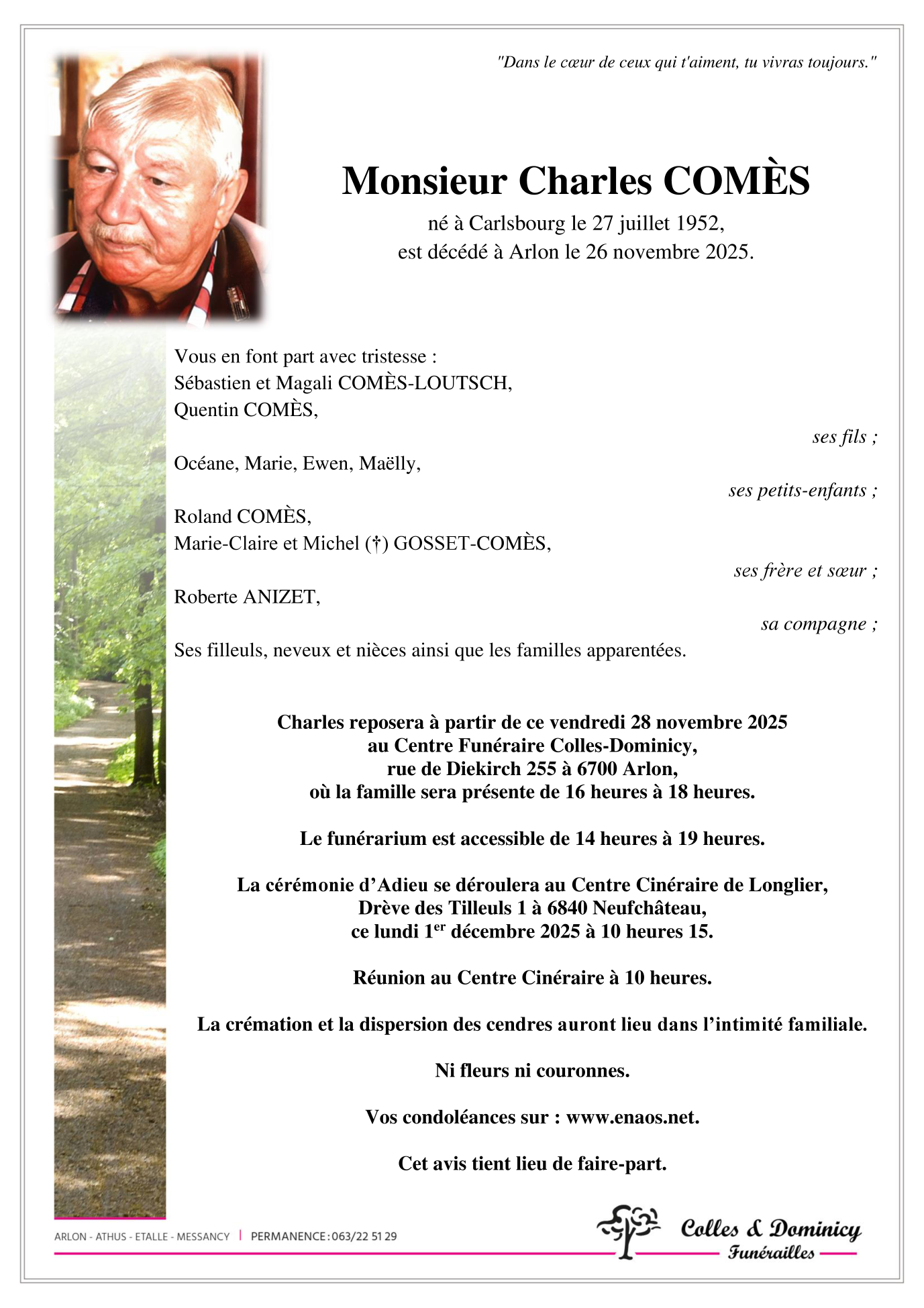 Fallecido en Arlon (6700, Bélgica) el miércoles, 26 de noviembre de 2025 a la edad de 73 años