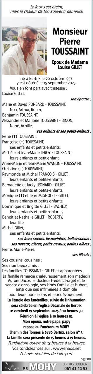 Fallecido en Bertrix (6880, Bélgica) el lunes, 15 de septiembre de 2025 a la edad de 67 años
