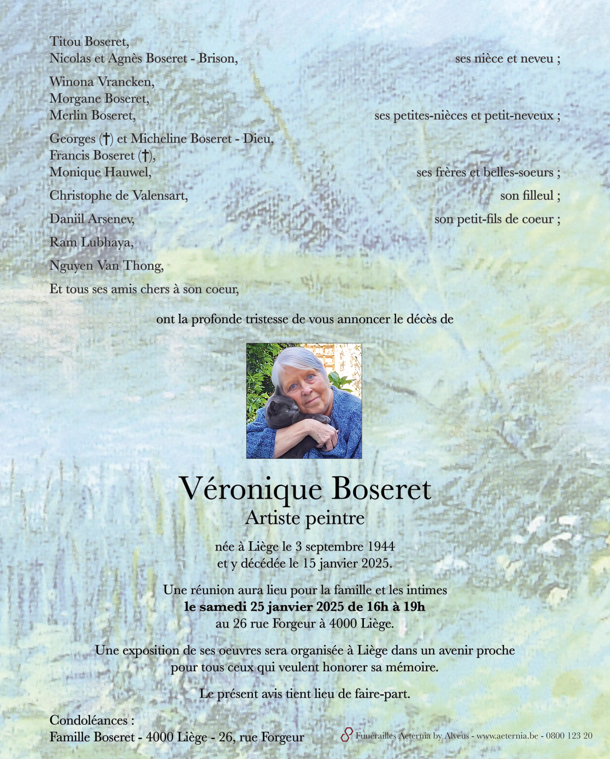 Fallecida en Liège (4000, Bélgica) el miércoles, 15 de enero de 2025 a la edad de 80 años
