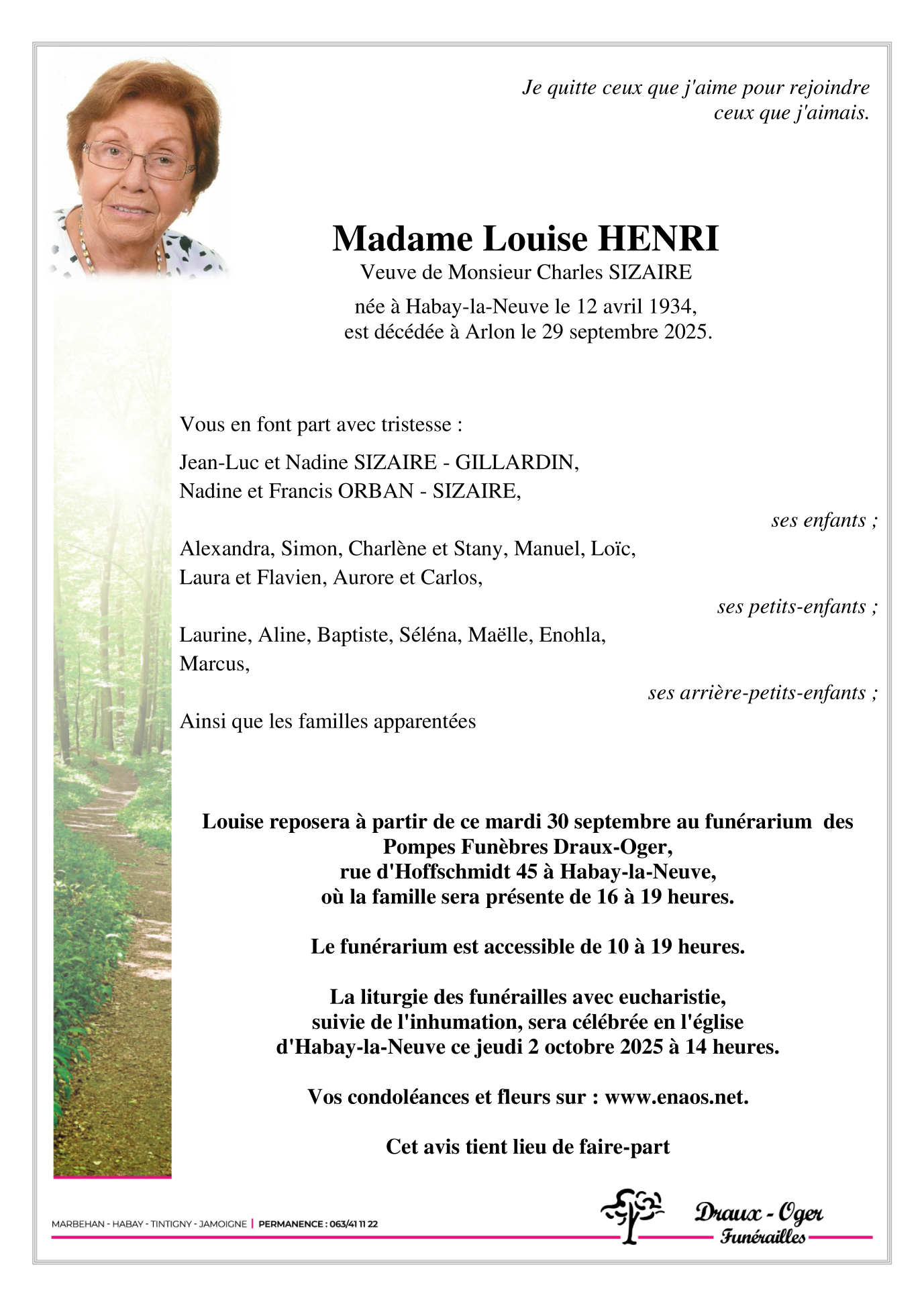 Décédée à Arlon (6700, Belgique) le lundi 29 septembre 2025 à l'âge de 91 ans