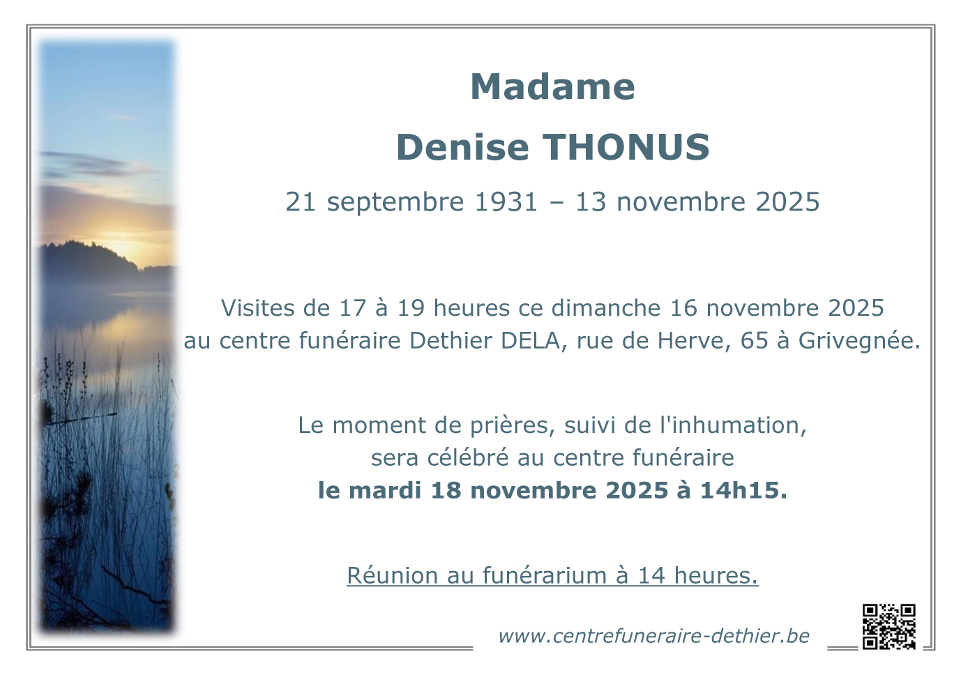 Fallecida en Liège (4000, Bélgica) el jueves, 13 de noviembre de 2025 a la edad de 94 años