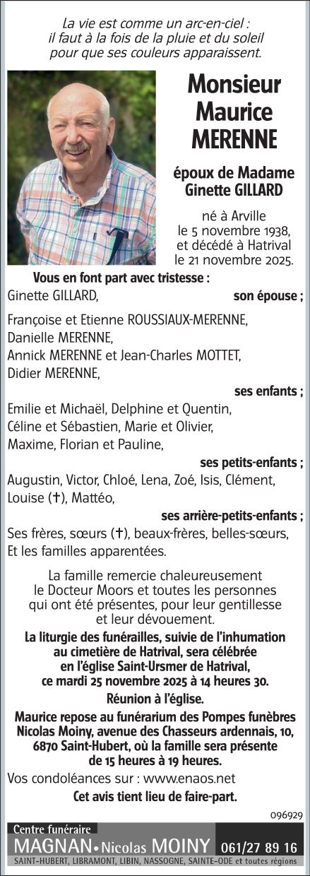 Overleden te Hatrival (6870, België) op vrijdag 21 november 2025 op 87-jarige leeftijd