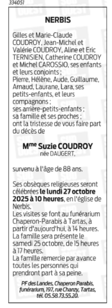 Fallecida en Mont-de-Marsan (40000, Francia) el miércoles, 22 de octubre de 2025 a la edad de 88 años