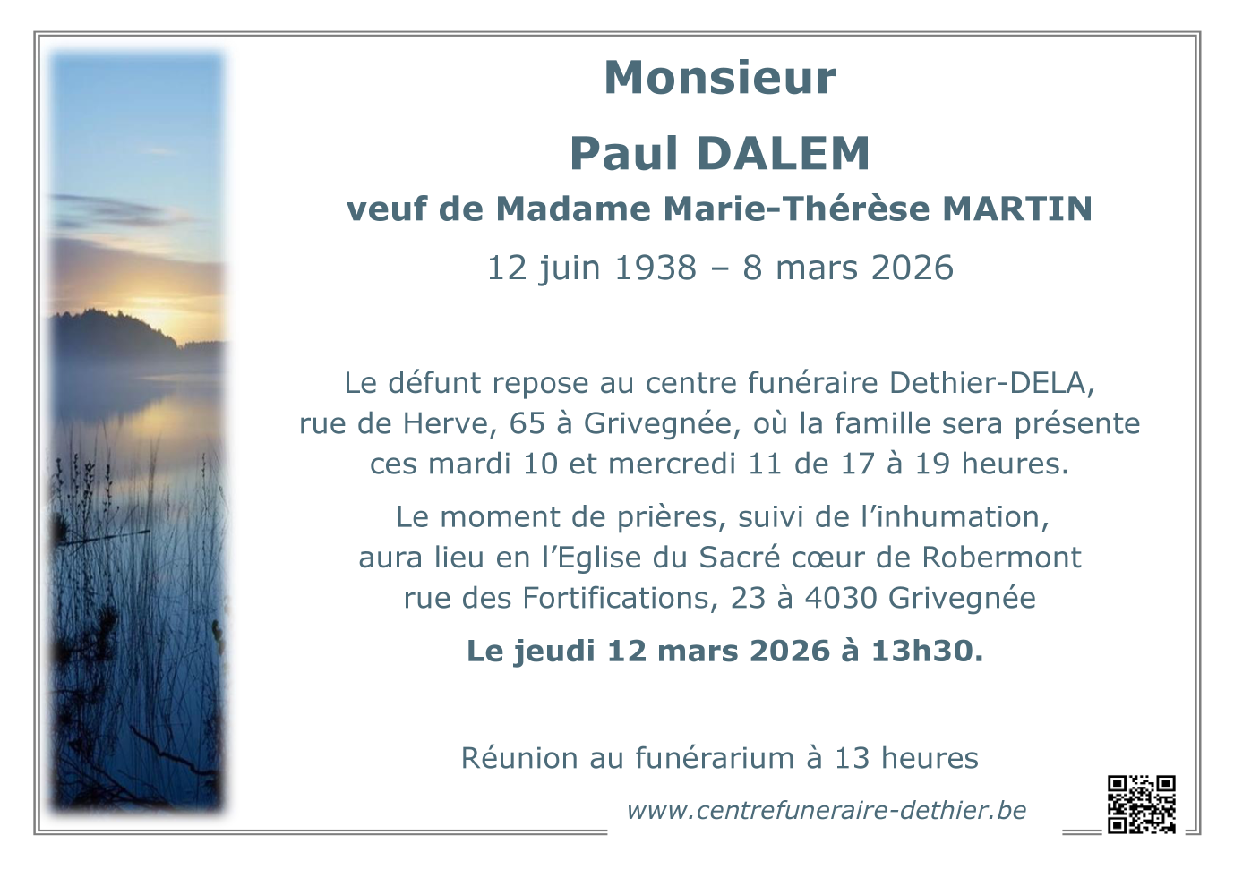 Overleden te Liège (4020, België) op zondag 8 maart 2026 op 87-jarige leeftijd