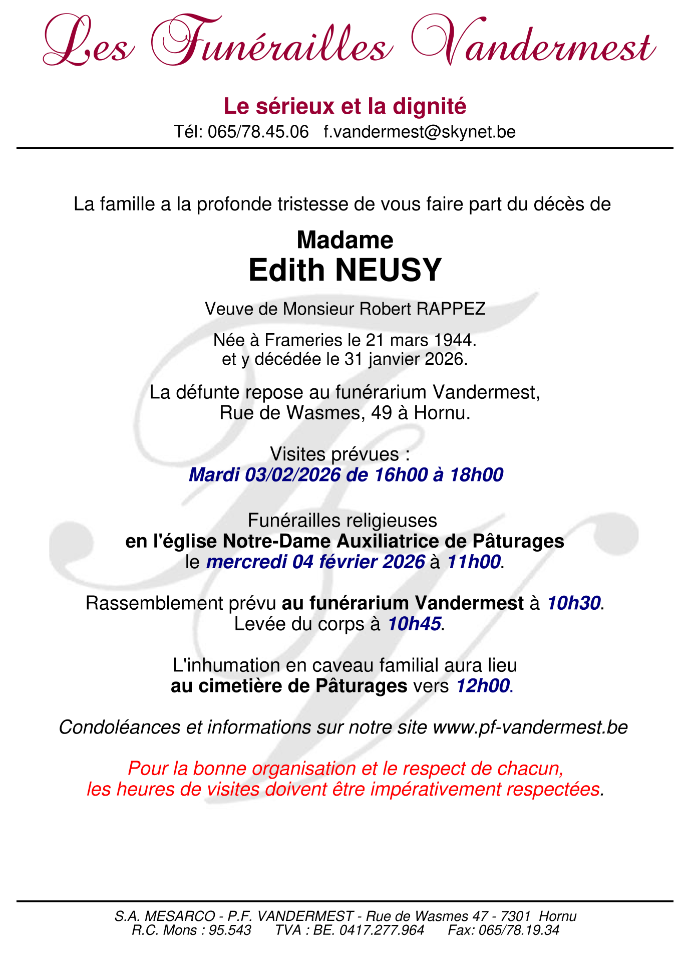 Overleden te Frameries (7080, België) op zaterdag 31 januari 2026 op 81-jarige leeftijd