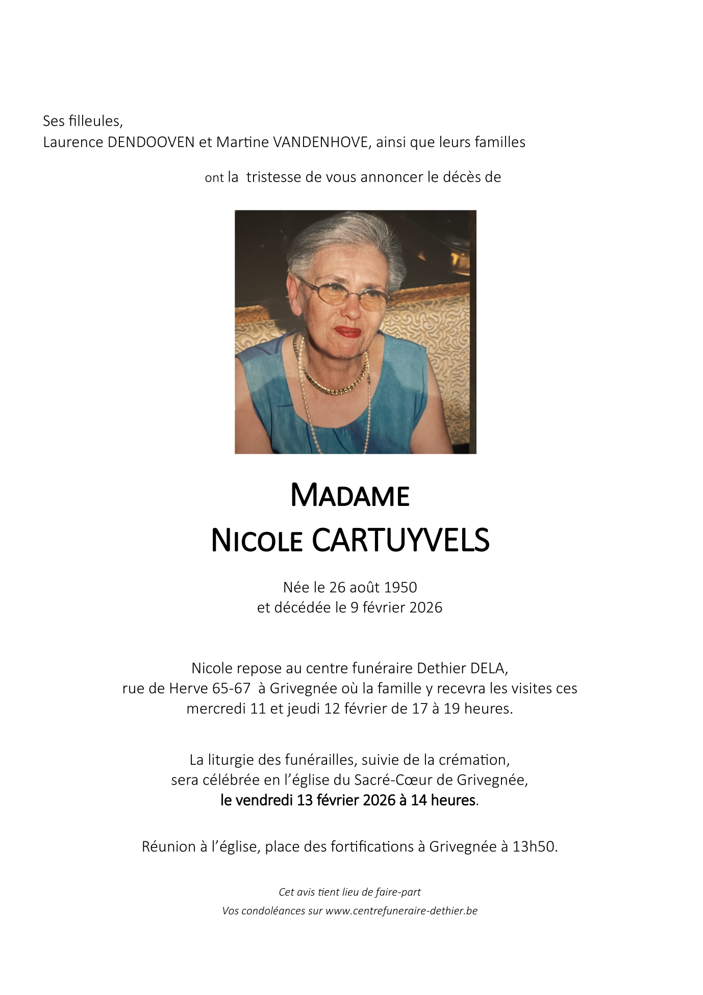 Fallecida en Liège (4000, Bélgica) el lunes, 9 de febrero de 2026 a la edad de 75 años
