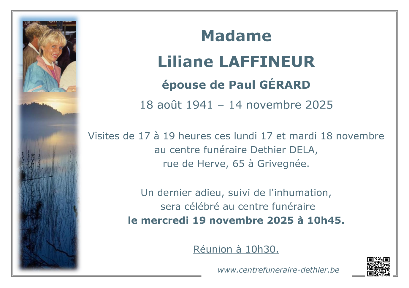 Décédée à Liège (4000, Belgique) le vendredi 14 novembre 2025 à l'âge de 84 ans