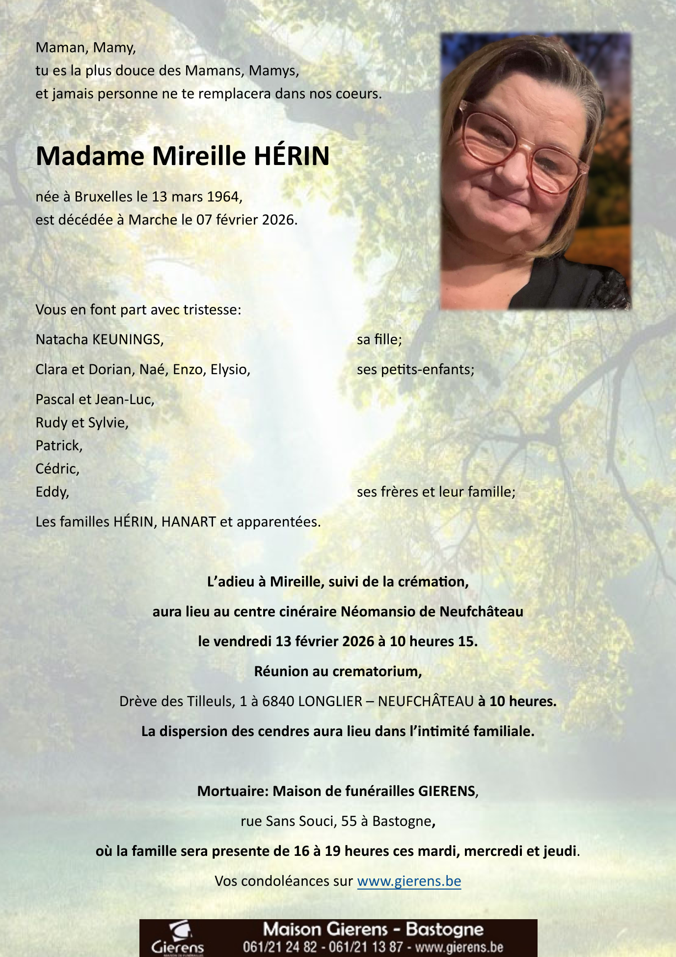 Overleden te Marche-en-Famenne (6900, België) op zaterdag 7 februari 2026 op 61-jarige leeftijd