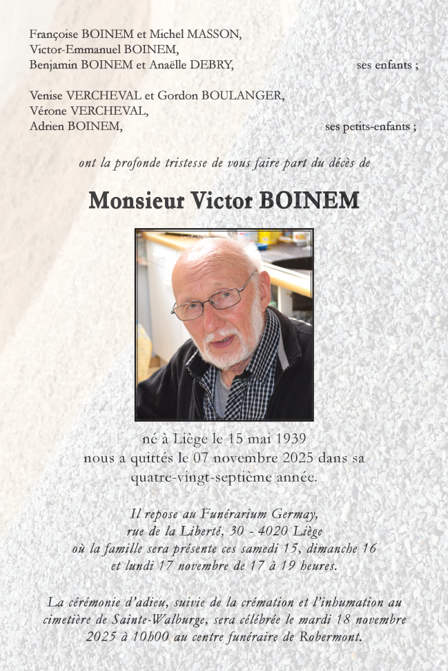 Fallecido en Liège (4000, Bélgica) el viernes, 7 de noviembre de 2025 a la edad de 86 años