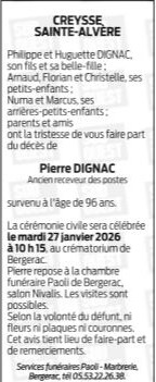 Fallecido en Bergerac (24100, Francia) el lunes, 19 de enero de 2026 a la edad de 96 años
