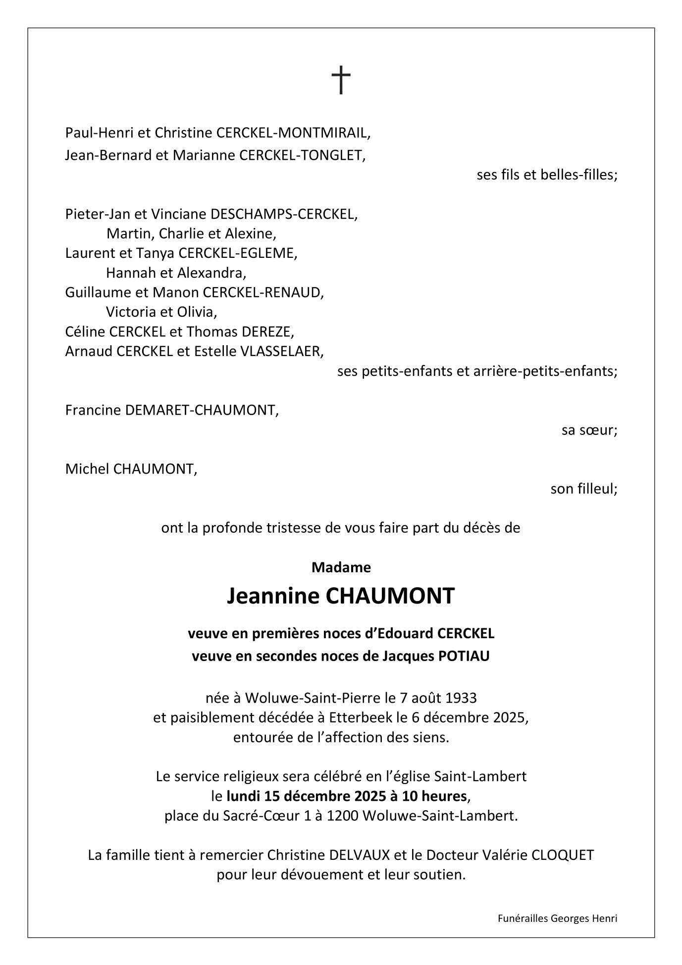 Died in Etterbeek (1040, Belgium) on 06 December 2025 at the age of 92 years