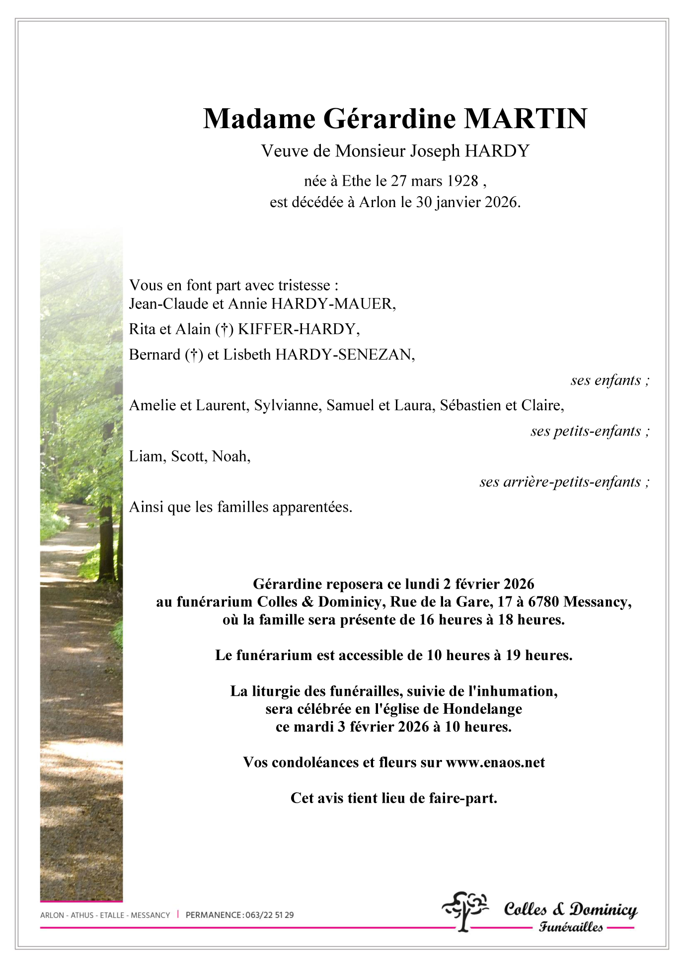 Fallecida en Arlon (6700, Bélgica) el viernes, 30 de enero de 2026 a la edad de 97 años