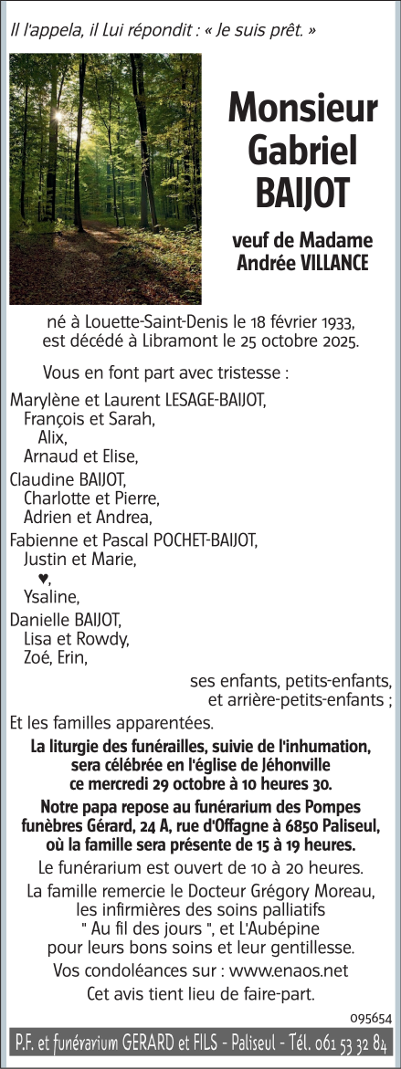Décédé à Libramont (6800, Belgique) le samedi 25 octobre 2025 à l'âge de 92 ans