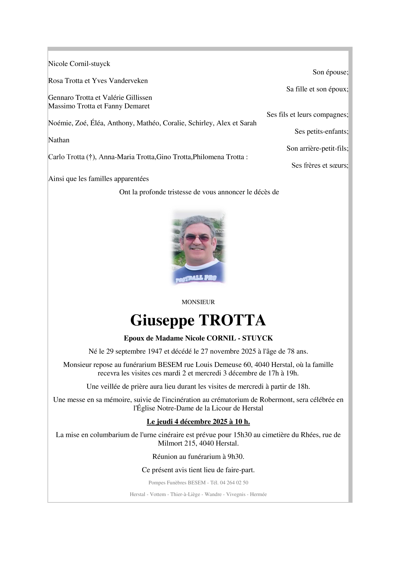 Fallecido en Liège (4000, Bélgica) el jueves, 27 de noviembre de 2025 a la edad de 78 años
