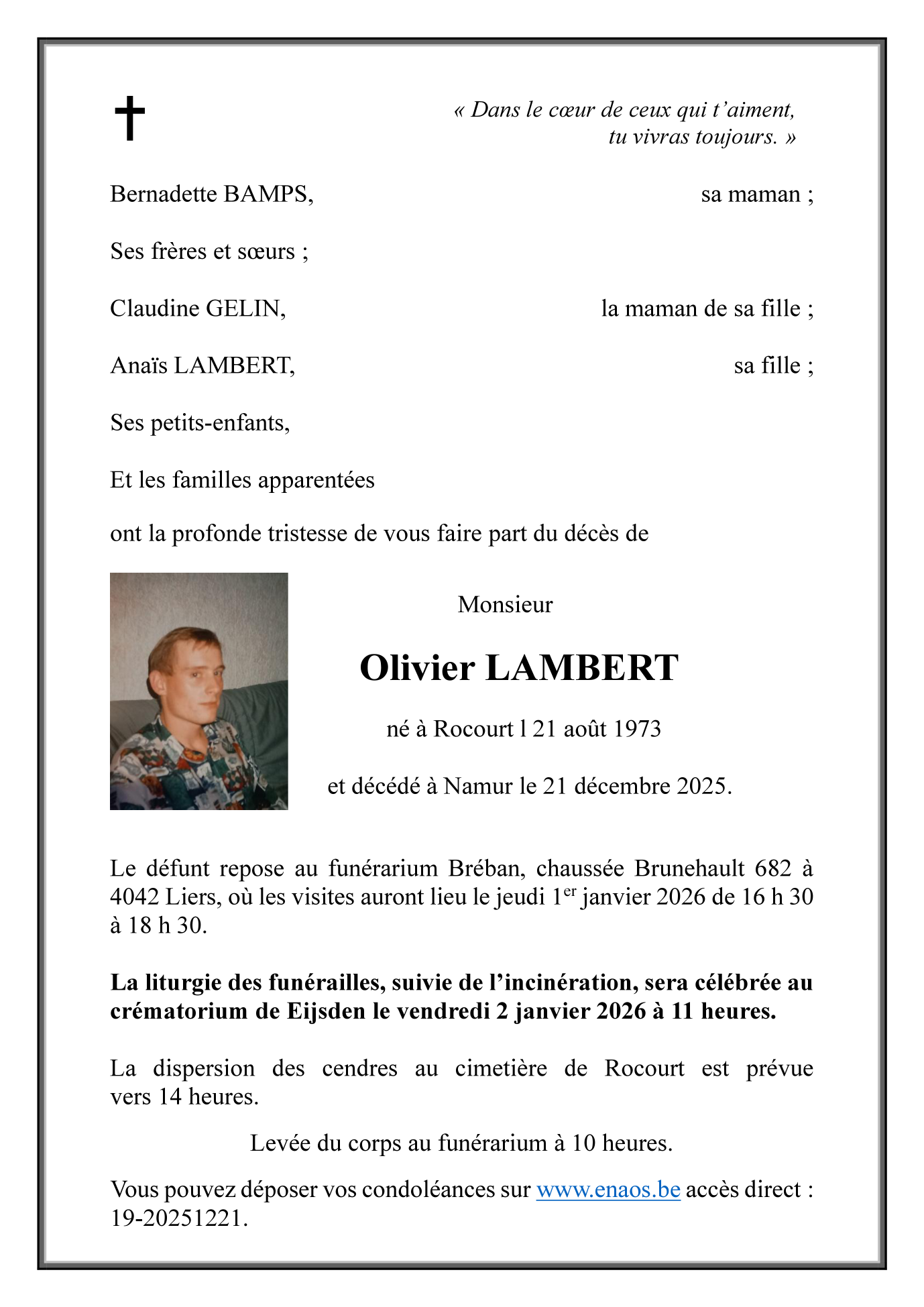 Fallecido en Namur (5000, Bélgica) el domingo, 21 de diciembre de 2025 a la edad de 52 años