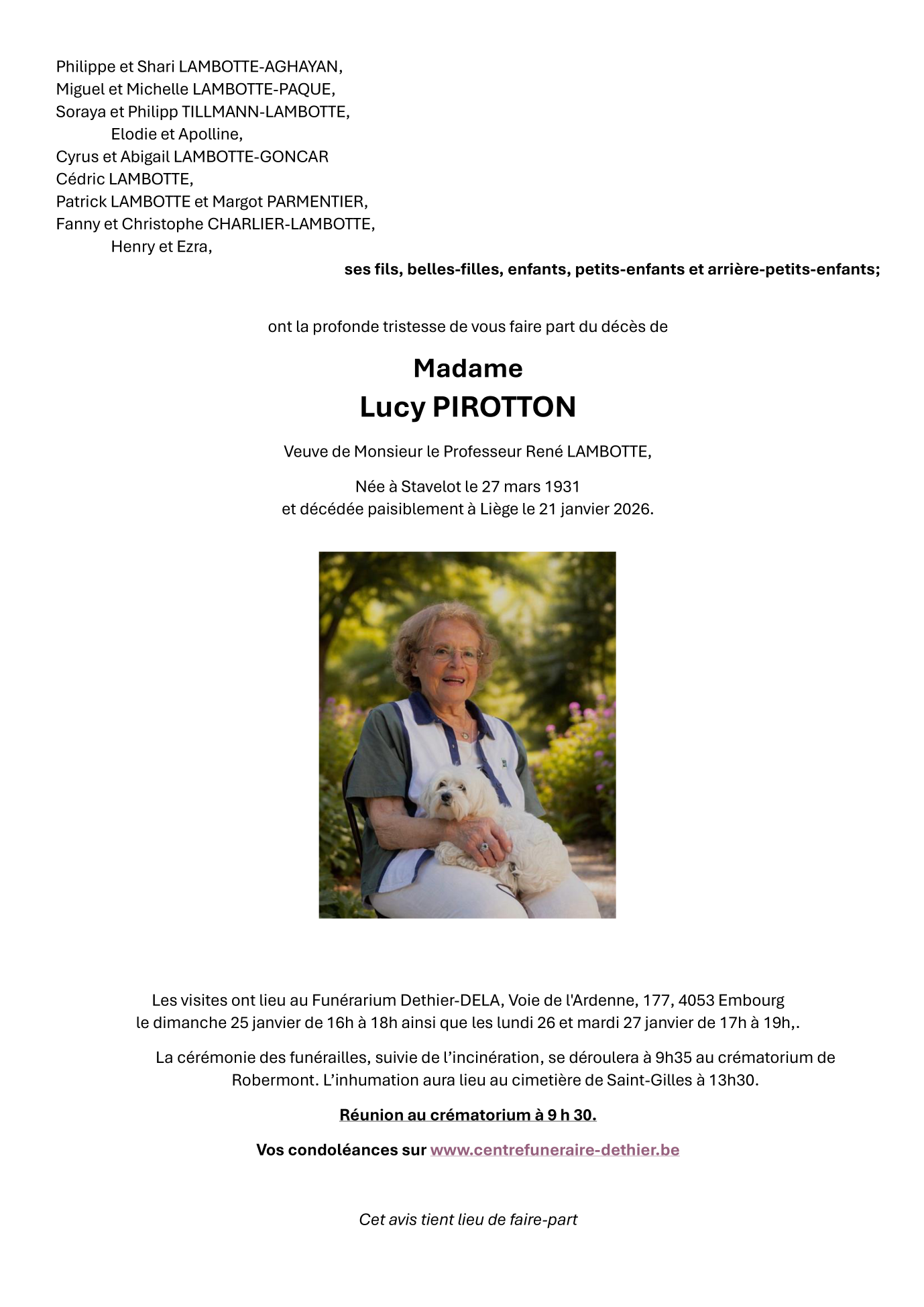 Weduwe van Monsieur René LAMBOTTE