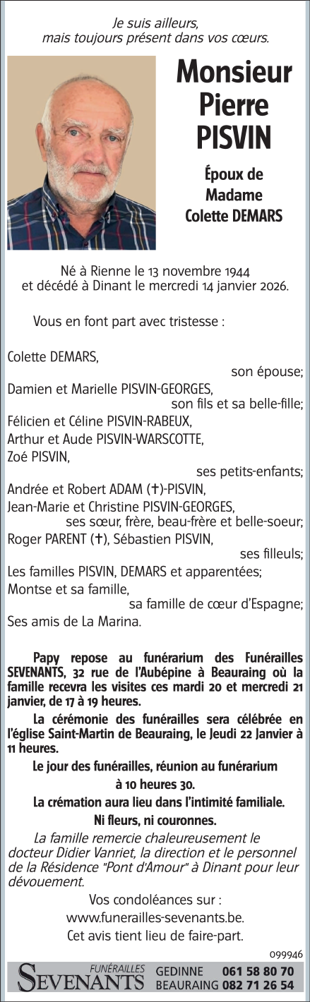 Died in Dinant (5500, Belgium) on 14 January 2026 at the age of 81 years