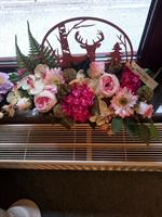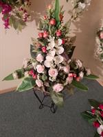 Vasque de fleurs artificielles avec carte de condoléance