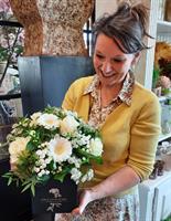 Photo non contractuelle | AVW04 - Rond bloemstuk met witte bloemen en groen Rond bloemstuk met witte bloemen en groen.