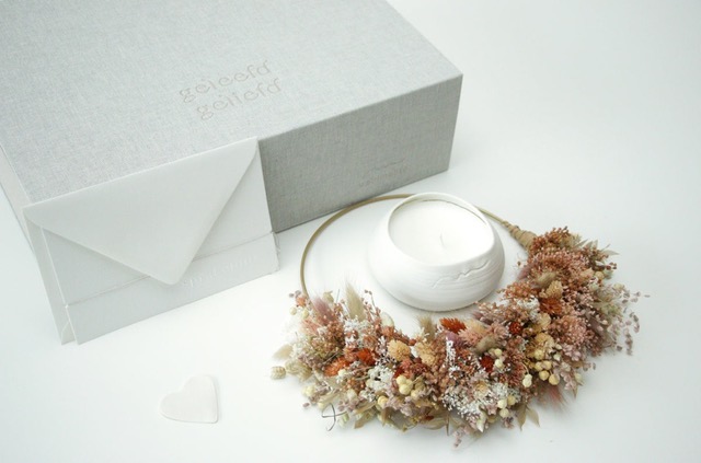 | Linnen Koesterdoos Een exclusief en creatief troostcadeau dat blijft. Gevuld met vier duurzame producten die kracht brengen op krachtige momenten. Een unieke flowerhoop 20cm , een porseleinen kaarsenpotje, een prachtige troostkaart en een koesterplaatje om overal mee naartoe te nemen of om achter te laten op een mooie plek. De prachtige troostdoos in natuurlinnen met foldiedruk 'geleefd, geliefd' leent zich prima voor het bewaren van deelnemingskaarten en voor de koesteren van persoonlijke herinneringen. Met veel liefde gemaakt in België.