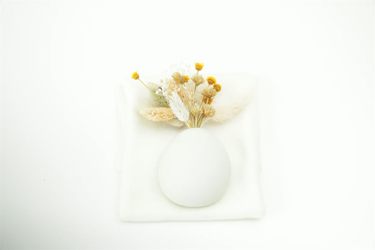 | troostdoosje Twee prachtige porseleinen vaasjes, samen verpakt in een unieke troostdoos. Ze zijn ontroerend in hun zuivere eenvoud en kunnen gebruikt worden voor zowel een droogboeketje als voor een lievelingsbloemetje in te plaatsen. Het vaasje kan water vasthouden. De twee vaasjes worden verpakt in een mooie witte vierkante magneetdoos met boeketjes en een krachtkaartje.