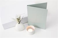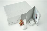 | Witte koesterdoos Hou-vast - (met fotomap, theelichtje, minivaasje, kaart) Leg samen met collega's, vrienden en familie en schenk de nabestaande deze unieke doos als een verbindend, troostend gebaar. De herinneringsdoos 38x26x7cm is gevuld met een saliegroen fotomapje, teder porseleinen theelichthouder, een unieke porseleinen mini-vaasje met droogboeket en een troostkaart 'hou-vast'. Warme troostdoos, ook voor kinderen of jongeren.