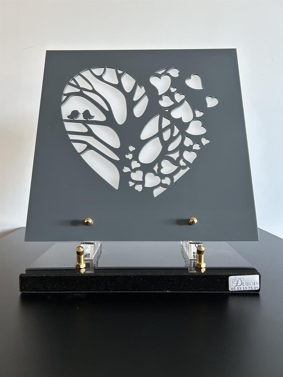 | Plaque altuglass coeur Plaque altuglass petit modèle sur socle granit