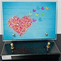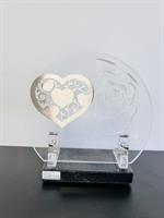 | Plaque coeur altuglass, inox Amour Plaque coeur altuglass, inox Amour sur socle granit ( 18,50x13,50cm).