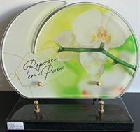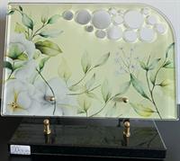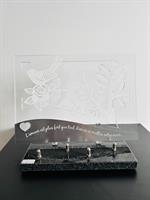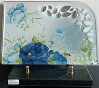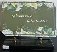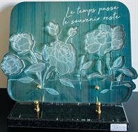 | Plaque cadre altuglass et inox fleurs Plaque cadre altuglass et inox fleurs vertes sur socle granit ( 21x12,5cm).