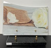 | Plaque photo rose blanche forme vague Plaque photo rose blanche forme vague sur socle granit ( 20x15cm).