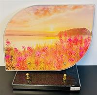 | Plaque photo paysage forme feuille Plaque photo paysage forme feuille sur socle granit ( 20x15cm).