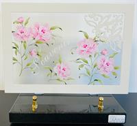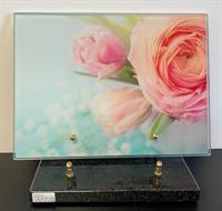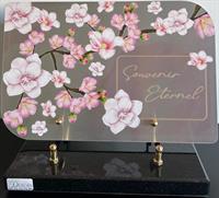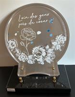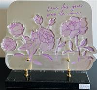 | Plaque cadre altuglass et inox fleurs Plaque cadre altuglass et inox fleurs roses sur socle granit ( 21x12,5cm).