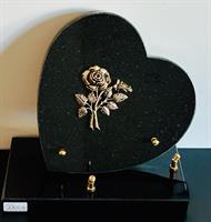 | Plaque coeur granit noir et bronze roses Plaque coeur granit noir et bronze roses sur socle granit (24x13cm).