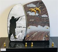| Plaque granit deux parties chasseur avec bronze Plaque granit deux parties chasseur avec bronze sur socle granit (33x15cm)