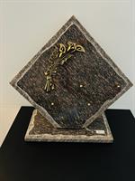 | Plaque granit Plaque granit décor dépoli oiseau. Bronze parchemin et colombes.