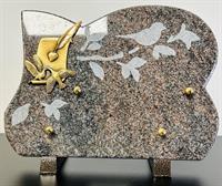 | Plaque granit Plaque granit 16x21cm avec bronze fleurs.