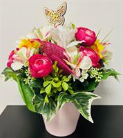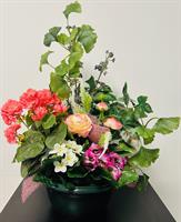 Photo non contractuelle | Fleurs en pot Fleurs en pot ( contenant en plastique) ton rose, blanc et jaune.
