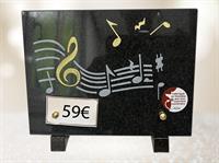 | Plaque granit souvenir Plaque en granit sur pieds, motifs musique, comprenant 1 inscription (inter en bronze). Merci de nous appeler au 04 78 29 07 11 pour nous préciser le texte souhaité. Attention : commande au plus tard le vendredi jusqu'à 18h pour les obsèques qui ont lieu le lundi.