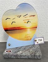 | Plaque souvenir cœur Plaque souvenir en altuglas 20x15cm sur socle en granit avec une photo de couché de soleil en forme de cœur comprenant 1 inscription (inter en bronze). Merci de nous appeler au 04 78 29 07 11 pour nous préciser le texte souhaité. Attention : commande au plus tard le vendredi jusqu'à 18h pour les obsèques qui ont lieu le lundi.