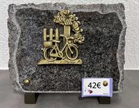 | Plaque souvenir Plaque souvenir dimension : 20X15cm en granit sur pieds, bords éclatés avec un motif de vélo en bronze comprenant 1 inscription (inter en bronze). Merci de nous appeler au 04 78 29 07 11 pour nous préciser le texte souhaité. Attention : commande au plus tard le vendredi jusqu'à 18h pour les obsèques qui ont lieu le lundi.