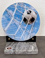 | Plaque souvenir football Plaque souvenir avec un socle en granit et motif de football en altuglas comprenant 1 inscription (inter en bronze). Dim : 19cm de large par 21cm de haut.