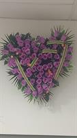 Coeur en fleurs tergal, de couleur dominante parme.